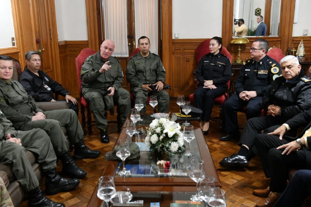El gobernador, Osvaldo Jaldo, recibió este lunes en su despacho de la Casa de Gobierno a las fuerzas federales con asiento en la provincia, para reforzar el trabajo conjunto en la lucha contra el narcotráfico y el delito.