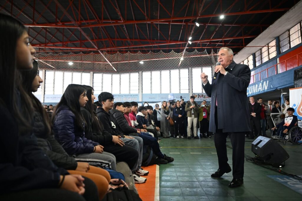 El gobernador, Osvaldo Jaldo, asistió al Complejo Belgrano donde miles de jóvenes tucumanos participan de las finales de los Juego Evitas provinciales.