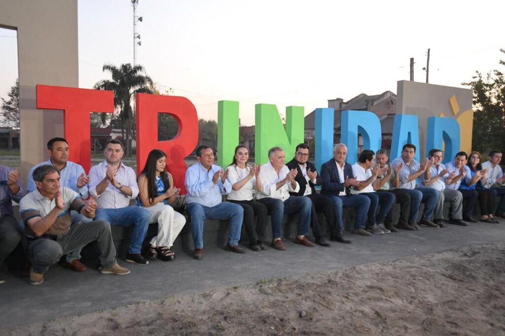 El gobernador, Osvaldo Jaldo, visitó la comuna de La Trinidad, en el sur de la provincia, donde dejó inauguradas obras de pavimento articulado, alumbrado público y el nuevo pórtico de ingreso.