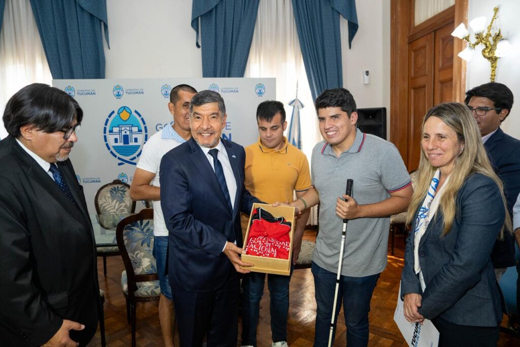 Durante la ceremonia, desarrollada en Casa de Gobierno, Acevedo recibió en su despacho al secretario de Gobierno y Relaciones Institucionales, Raúl Albarracín; a la vicepresidenta del Ente Tucumán Turismo, Inés Frías Silva; a la subsecretaria de Gobierno, Katherine Mazzucco; al director de Discapacidad e Inclusión Social de la UNT (DISUNT), Darío Mamani, y a los deportistas que representarán a la provincia en el certamen.